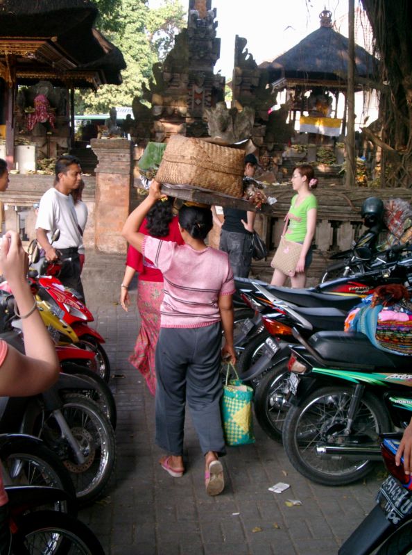 Bali的婦女都有厲害的頂上功夫,如果是下面有個像帽子一樣的座的架子稱著,她們甚至可以不用手扶呢。